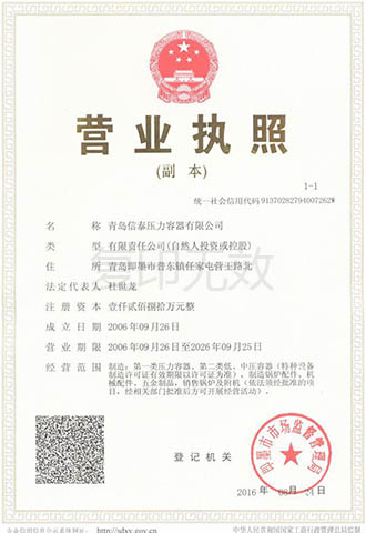 青島信泰壓力容器有限公司擁有山東省質(zhì)量技術(shù)監(jiān)督局頒發(fā)的D1D2類壓力容器設(shè)計(jì)許可證和制造許可證,產(chǎn)品主要有:低中高壓儲氣罐系列、壓縮空氣罐、氮?dú)夤,氧氣罐,氫氣罐,真空罐不銹鋼儲氣罐、蒸汽儲氣罐、分氣缸,氣體緩沖罐系列、換熱器,穩(wěn)壓罐產(chǎn)品、儲存容器,化工容器、標(biāo)準(zhǔn),非標(biāo)壓力容器系列產(chǎn)品,主要配套與石油、化工、制藥、熱電、啤酒、機(jī)械制造、環(huán)保等行業(yè)所需D級壓力容器產(chǎn)品,形成多品種的中低壓力容器生產(chǎn)品種及規(guī)模。公司本著“客戶第一,誠信至上”的原則,熱誠歡迎各界朋友前來參觀、考察、洽談業(yè)務(wù)。